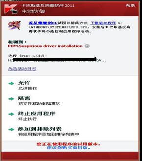 卡巴斯基杀毒软件版本包括:卡巴斯基反病毒软件和卡巴斯基全功能安全软件2011。