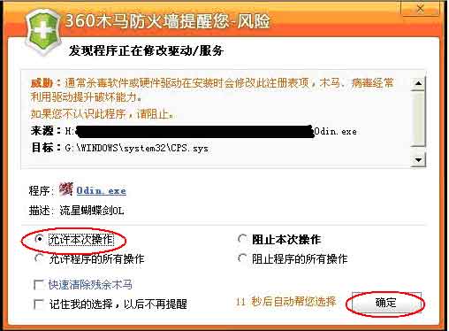 如果游戏运行过程中弹出如下提示: 解决方法: 1.选择“允许本次操作”并单击“确定”即可,如下图: