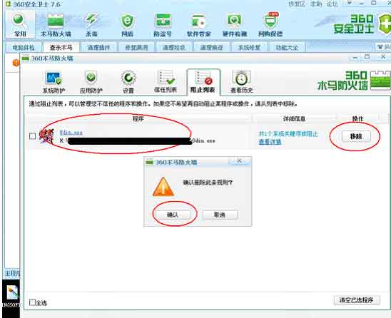 如果游戏运行过程中弹出如下提示:(错误信息码(0x000000002)) 解决方法: 1.打开“360安全卫士”主窗体,选择“木马防火墙”,并在弹出的“木马防火墙”对话框中选择“阻止列表”,如下图: 2.在“阻止列表”中找到Odin.exe并单击“移除”按钮,在弹出的提示信息中单击“确定“即可。