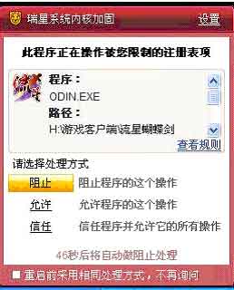 3.找到 游戏的根目录下的 bin\win32\Odin.exe,将该应用程序添加入白名单,如下图: