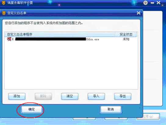 4.单击“确定”,关闭“自定义白名单对话框”